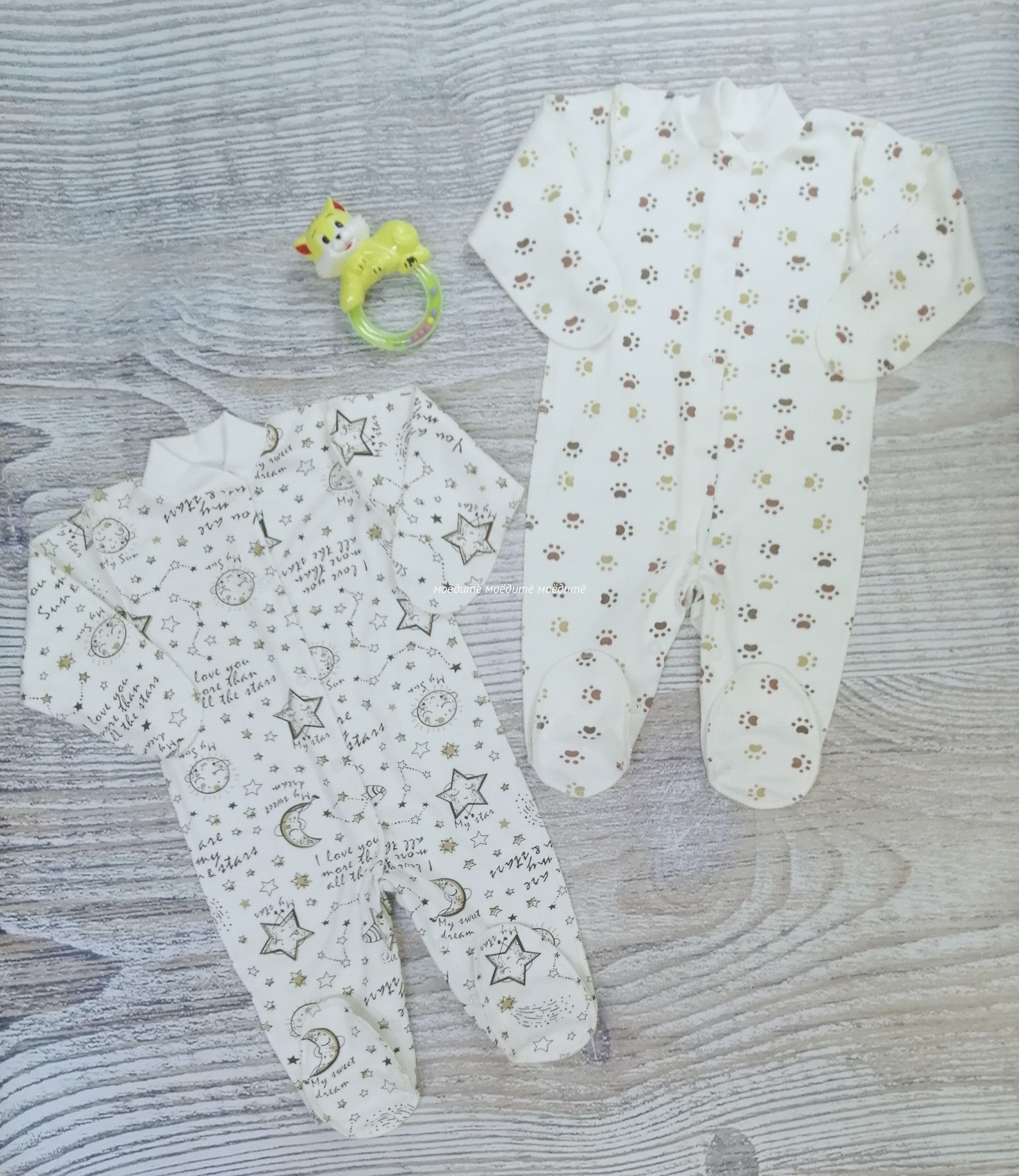 Комбинезон выполнен из 100% хлопка (интерлок). Комбинезон с закрытыми ручками и с закрытыми ножками, без воротничка. Комбинезон спереди и между ножек на кнопочках.